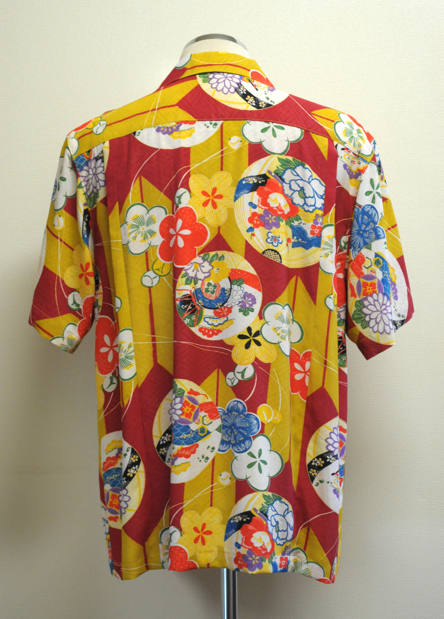 卍繋ぎの地紋にシャープな矢絣と可愛い丸輪。色目鮮やかなアロハらしい一枚。