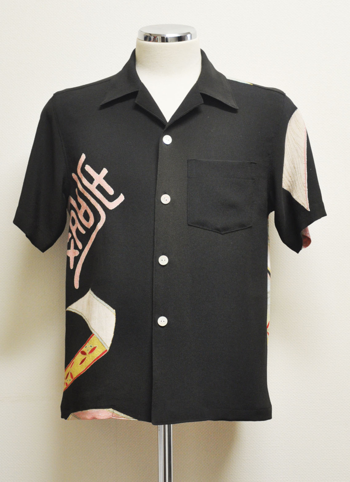 左肩から始まりぐるりと右前まで柄を繋げ附下げ風に仕上げた一着。
