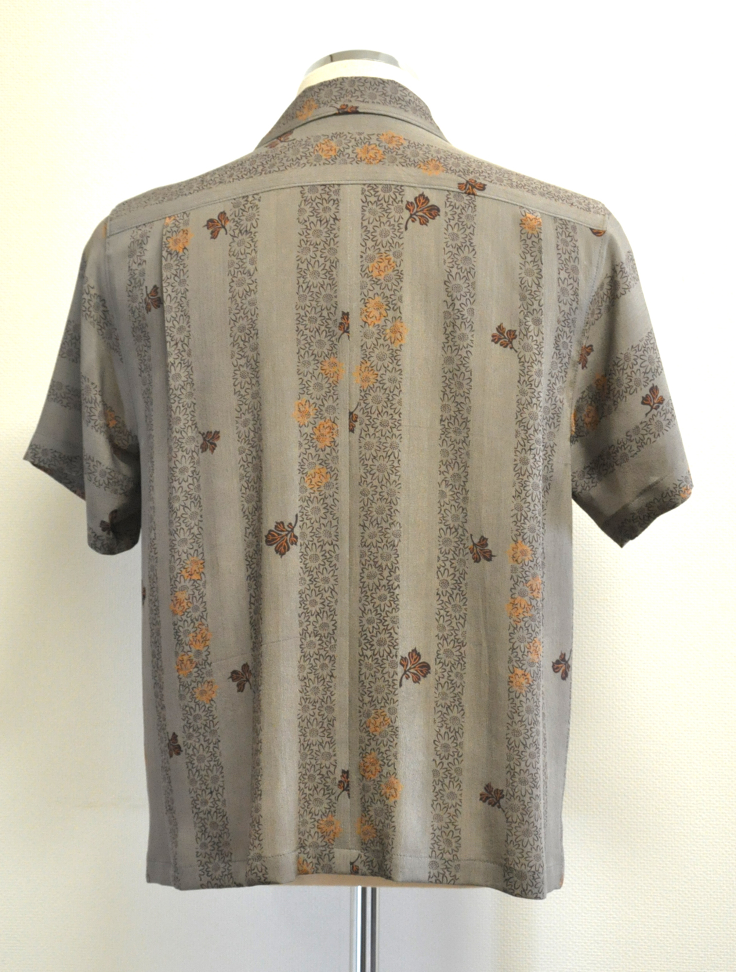縦ストライプにシブすぎる色目、ただ描かれた花柄は可愛らしいく着心地は言わずもがな。昭和のお爺さんが着てそうなリアルヴィンテージシャツ。